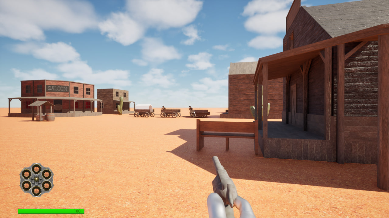 Встречайте «Револьвер Шерифа» — динамичный шутер от первого лица, где вы — последняя надежда городка, захваченного бандой «Кровавые Тени». Вам предстоит в одиночку очистить улицы, салуны и каньоны от головорезов, полагаясь лишь на меткость вашего шестизарядника и хладнокровие в перестрелках. Каждый выстрел здесь решает исход дуэли, а каждый спасённый житель приближает момент, когда в город вернётся закон и порядок. Готовы ли вы снова вложить железо в кобуру?